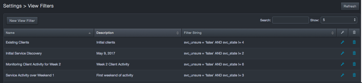 | Settings > View Filters | Shows the view filters saved using the Save option selected from the Filter drop-down list. | Chapter 3 |