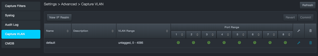 There might be times when you want to edit a realm. For example, you might want to change the name, description, VLAN ports, or capture ports for a realm.
