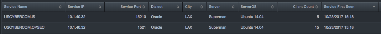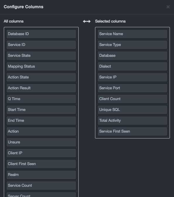 | Discovery > Clients | Client Discovery = shows which clients are connected to which databases, the times when each client became visible to the system, and each service’s client IP address. | Discovery Manual |