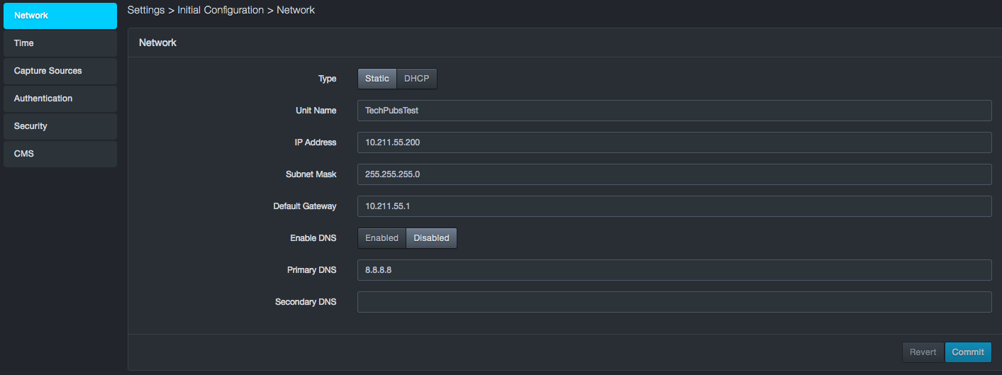 | Settings > Initial Configuration | Network = configures IP address and associated network settings. | Chapter 3 |