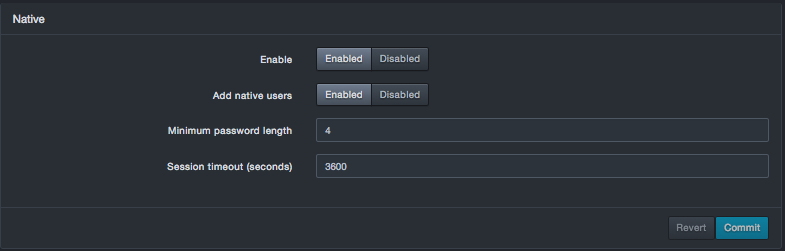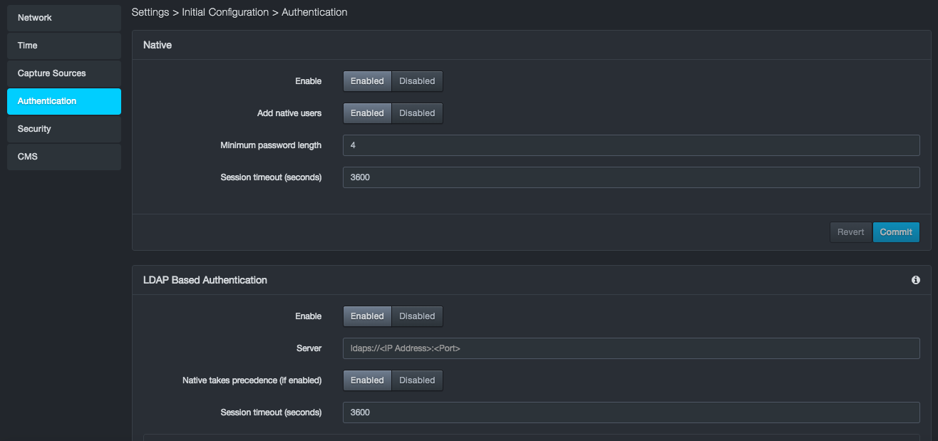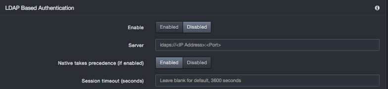 | Authentication = configures native and Lightweight Directory Access Protocol (LDAP) authentication settings. | Chapter 3 | |