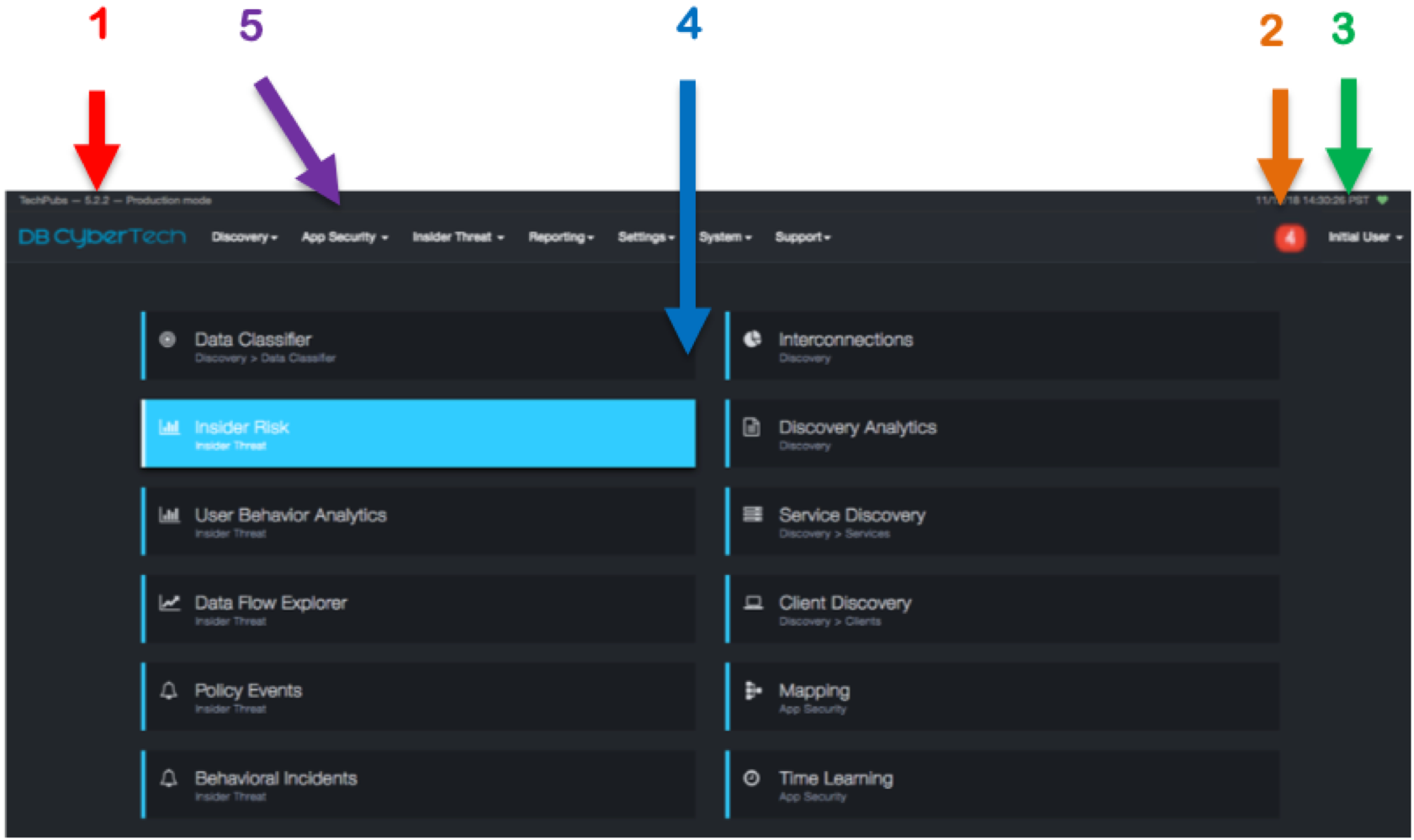 | Insider Threat > Dashboard | Shows the nature of stability in your system and summarizes system-generated events based on any rules that are in place. | Security Manual |