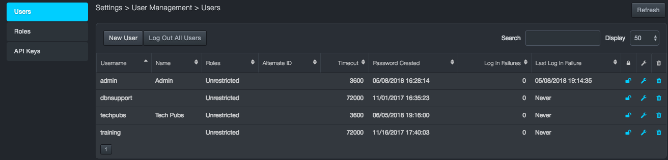 | System > Restart Web Server | Restarts the DBC platform web server that supports the web management interface. | Management Guide |