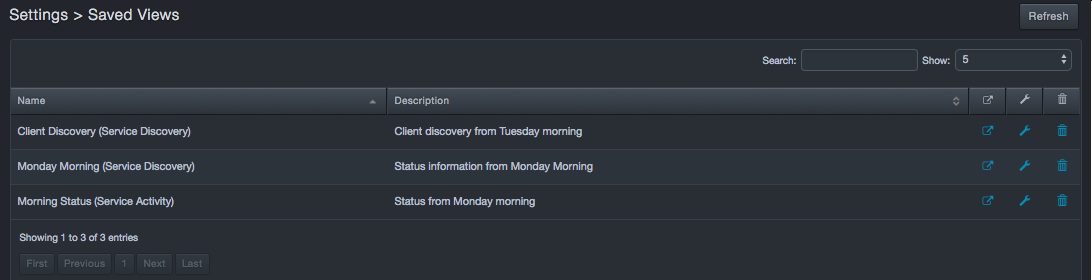 | Settings > Saved Views | Shows the views saved using Save view as. | Chapter 3 |