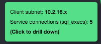 By default, the interconnection diagram tries to show all discovered clients and all services in a single diagram. Depending on your environment, however, a single diagram might not be able to show all entities legibly. In large, complex environments where the number of clients and database services reaches a certain threshold, the interconnections diagram aggregates clients and/or services according to their subnet.