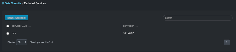 Now using the designated pathway again, Discovery > Data Classifier > Excluded Services, you will now see the service you just excluded from results.