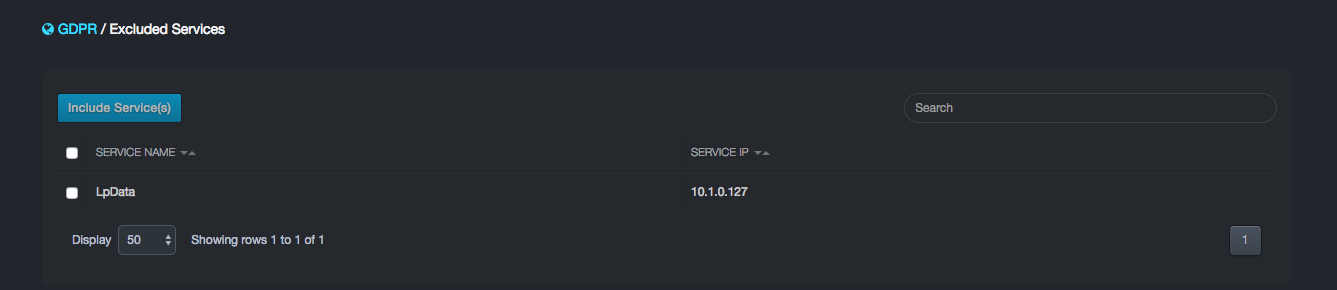 Now using the designated pathway again, Discovery > GDPR > Excluded Services, you will now see the service you just excluded from results.